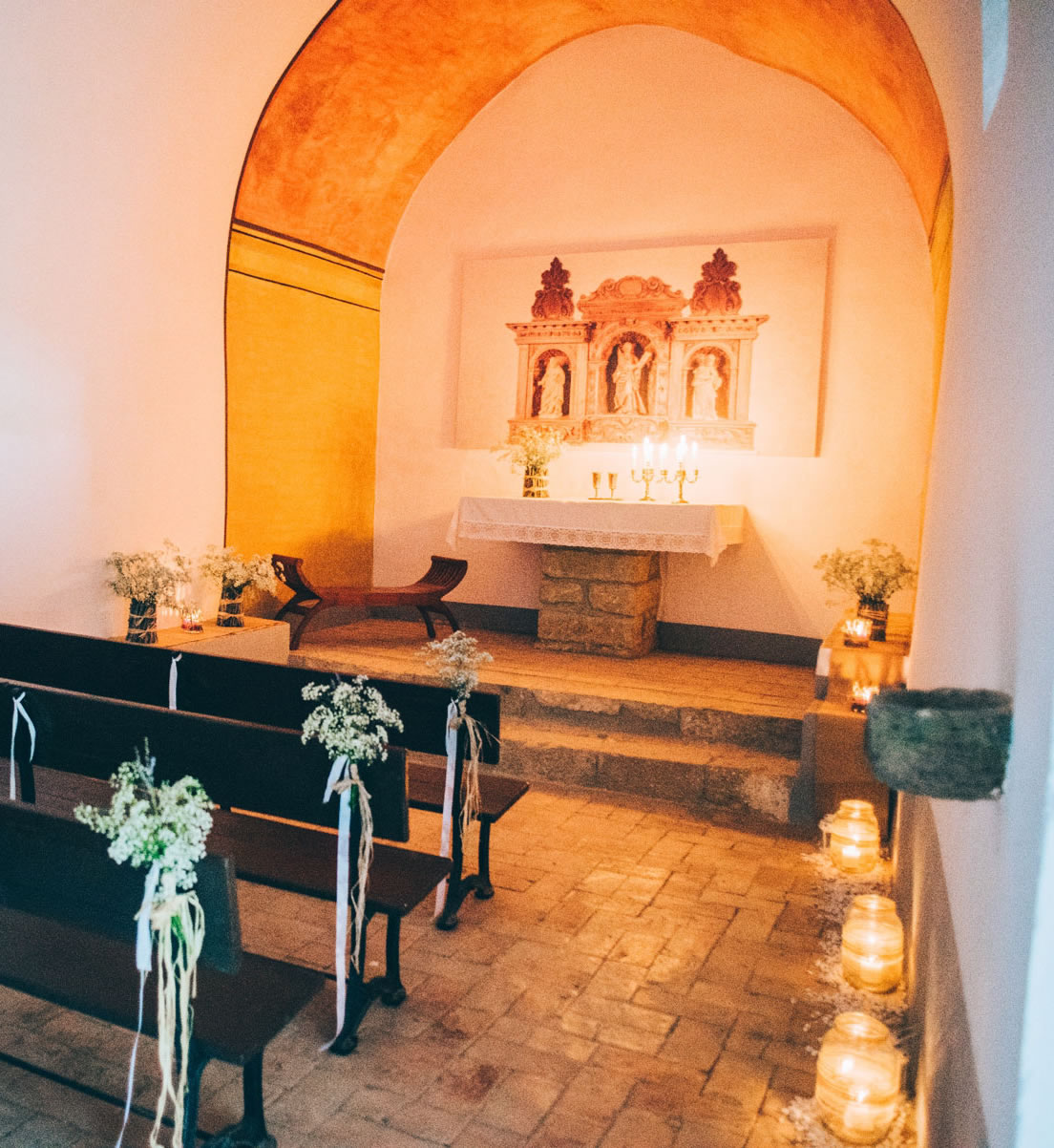 Si vuestra idea es celebrar una boda civil, podéis hacerlo en el jardín, en el bosque o en el interior de la masía. Si pensáis en una ceremonia religiosa ponemos a disposición la Ermita de Sant Andreu de Miralles, situada a tan solo 90 metros de la masía.